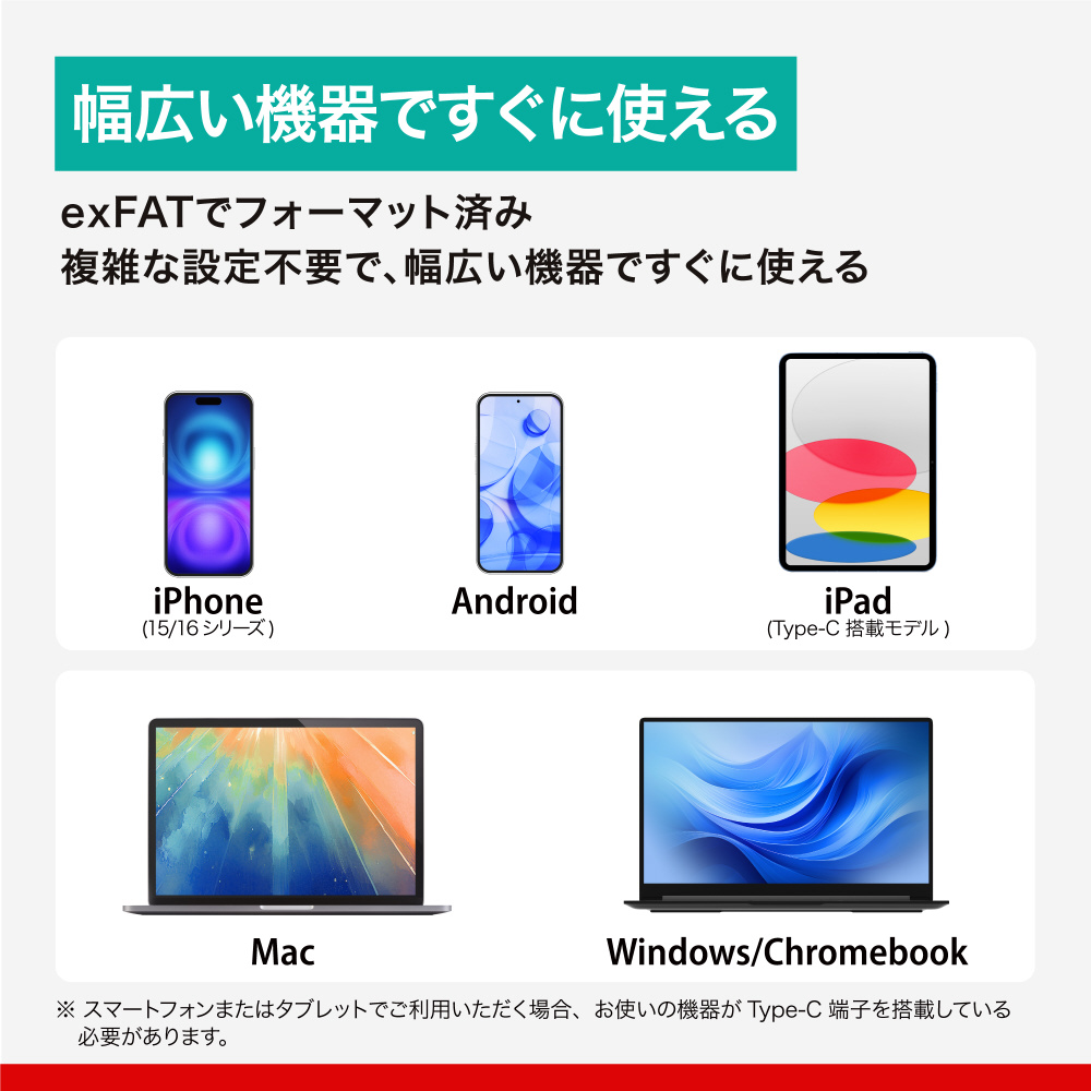 ※対応機種:USB-C端子搭載のiPhone/iPad/Android端末