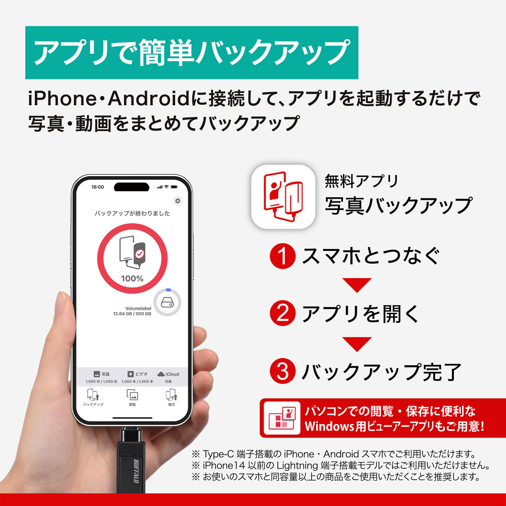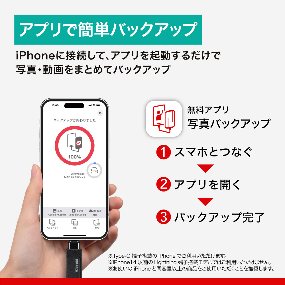 ・アプリの詳細(https://www.buffalo.jp/topics/special/detail/iphone-usb-backup.html)