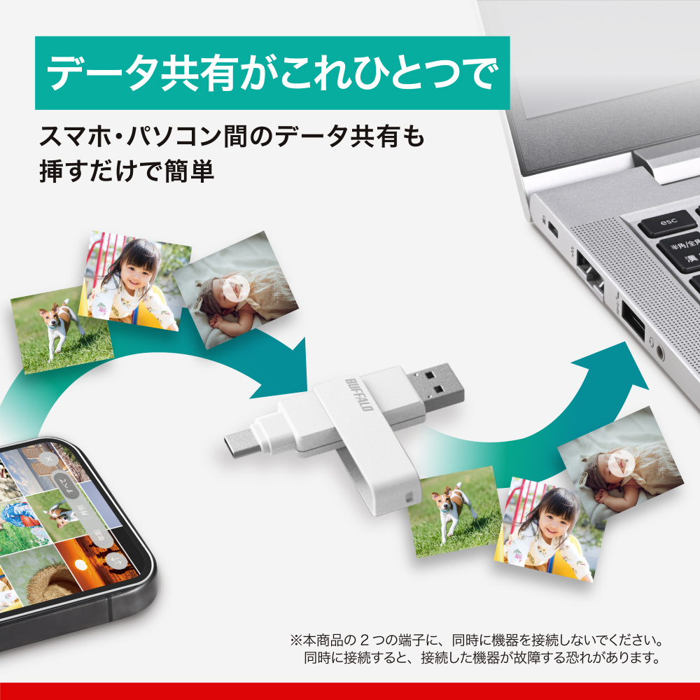 本商品は、バッファローアプリ「写真バックアップ」(無料)に対応。大切な思い出をもっと簡単に保存できます。