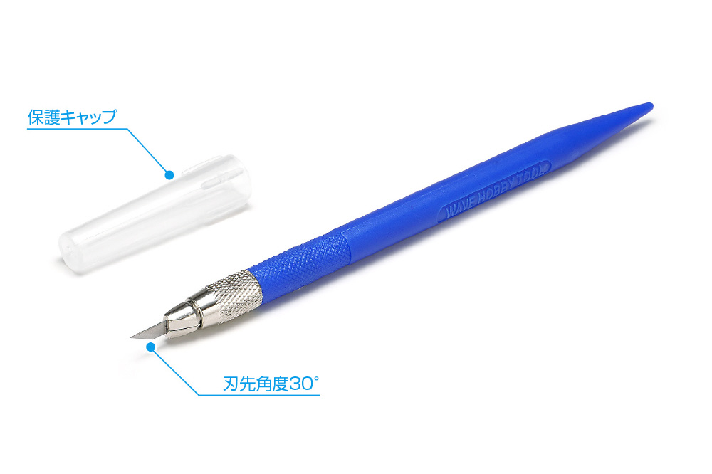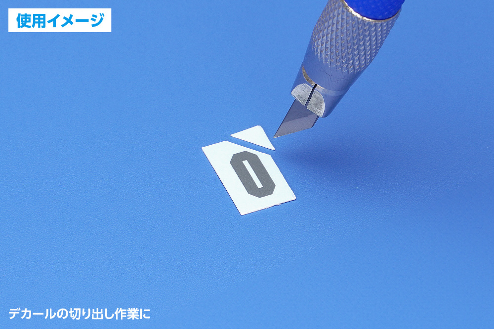 ゲート跡やパーティングラインの整形、マスキングテープ、デカールの切り出しなど幅広く使えます。刃先30°タイプの替刃(10枚)付き。