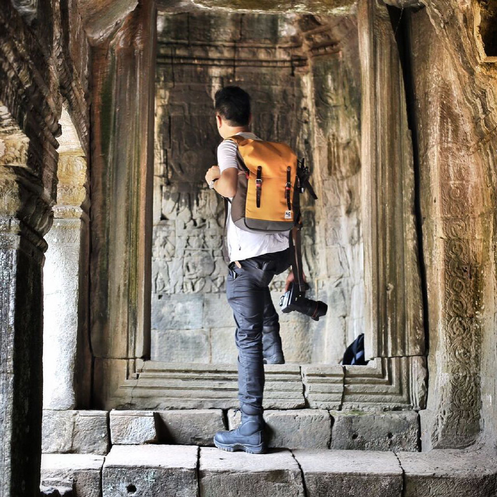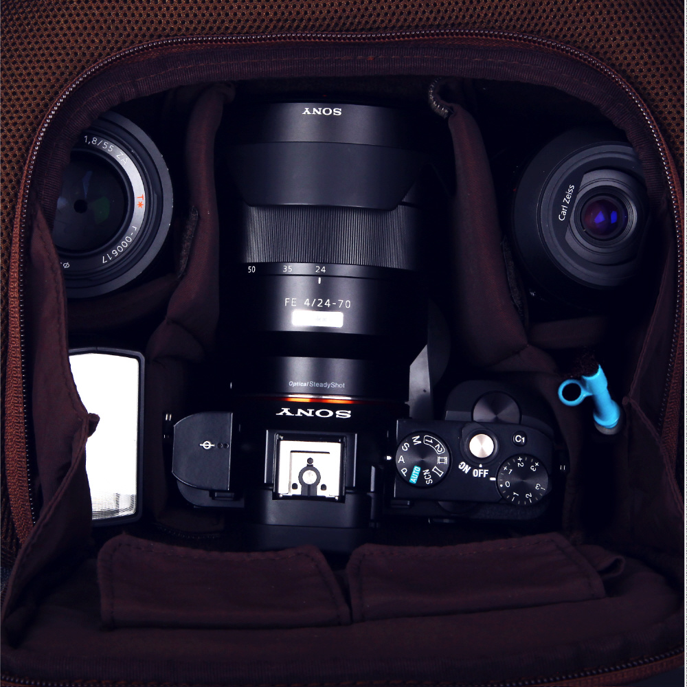 シンプルでシックな美しい中型バックパック。十分な収納力とカメラバッグとしての機能も充実。中仕切りをはずせばタウンユースにも最適。