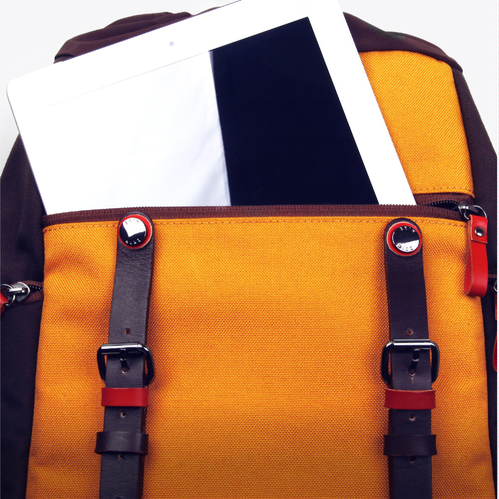 フロントポケットには9.7インチ程度のタブレットPCも収納可能です。