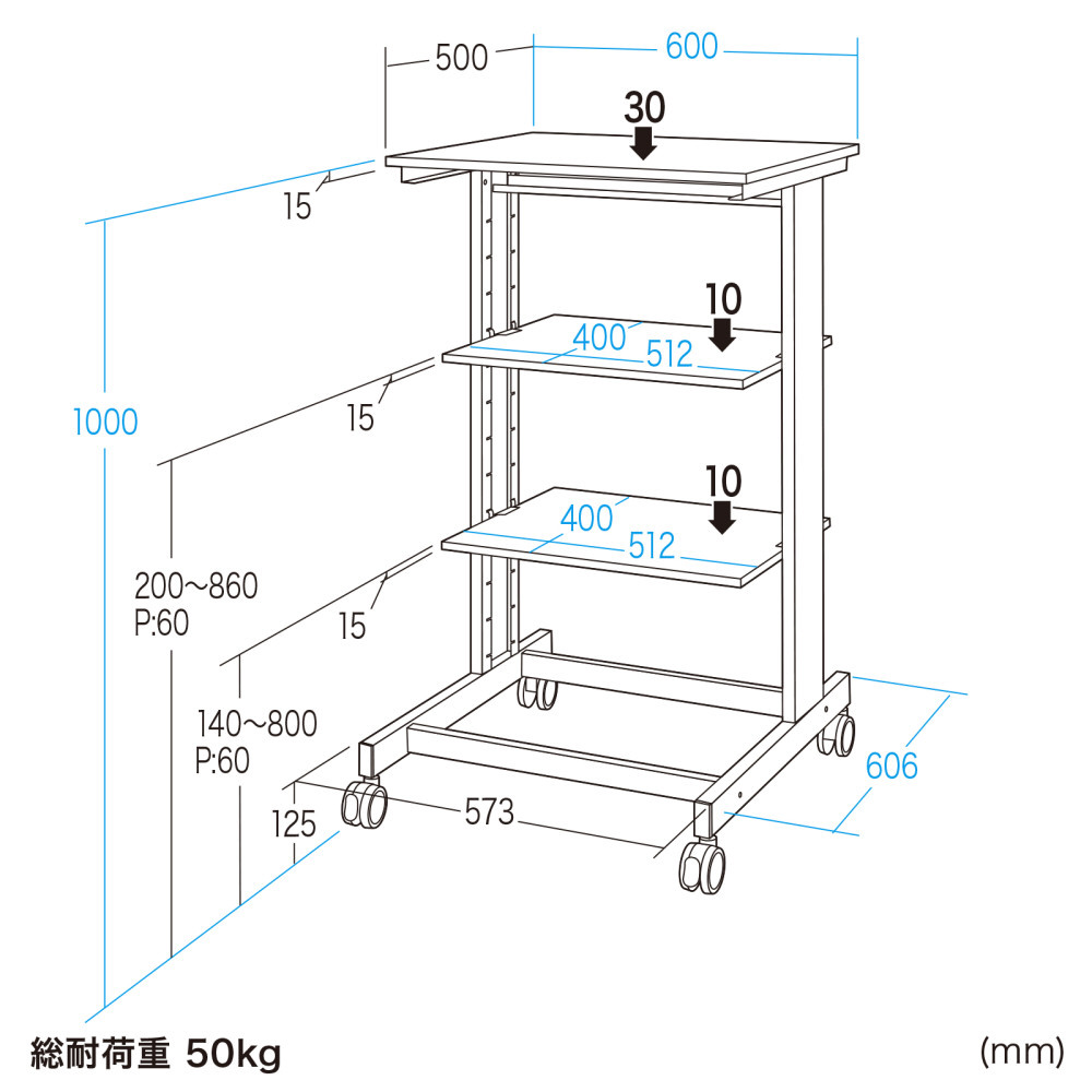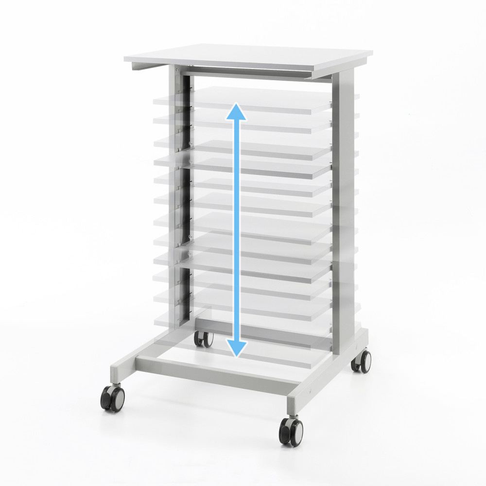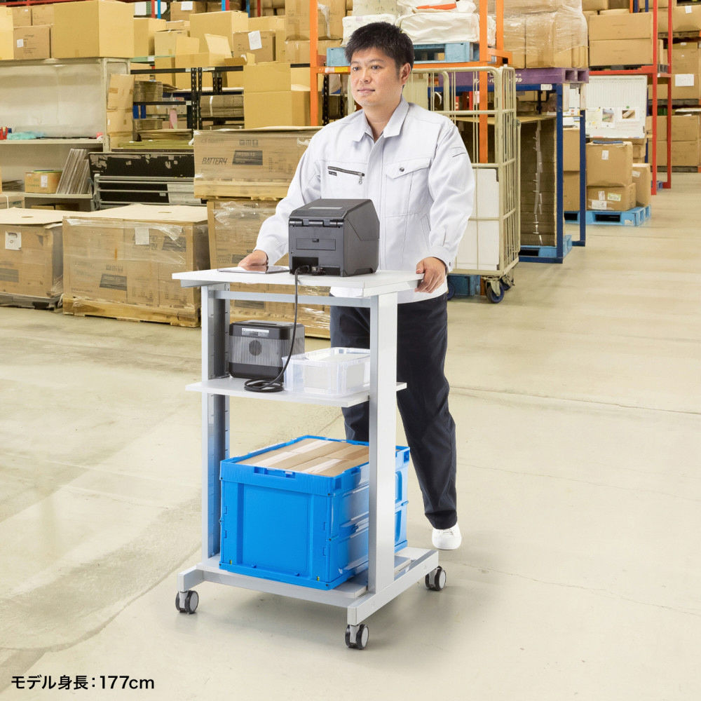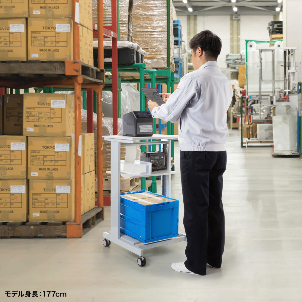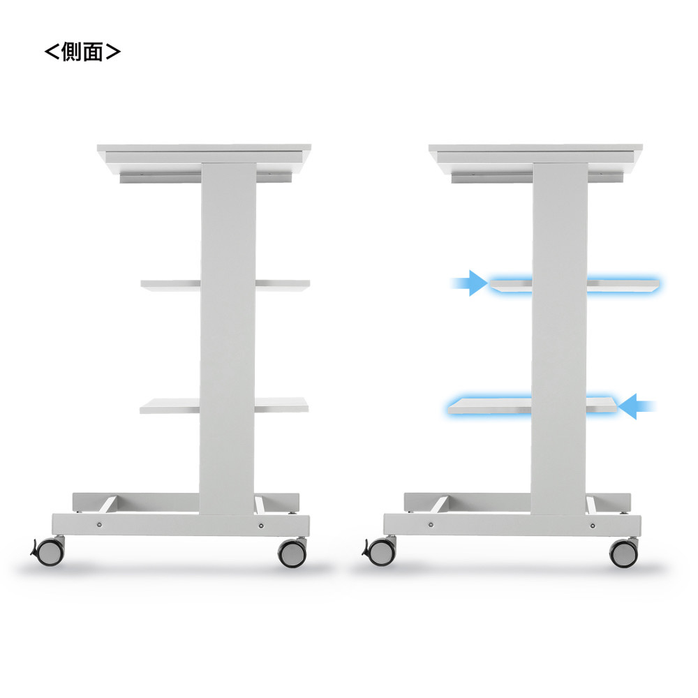 マルチカート [W600xD606xH1000mm] キャスター付き スチール製 中棚 高さ調整 前後可動 ノックダウン 組立式 天板 600mm キャスター径 65mm ライトグレー RAC-MULTCT5