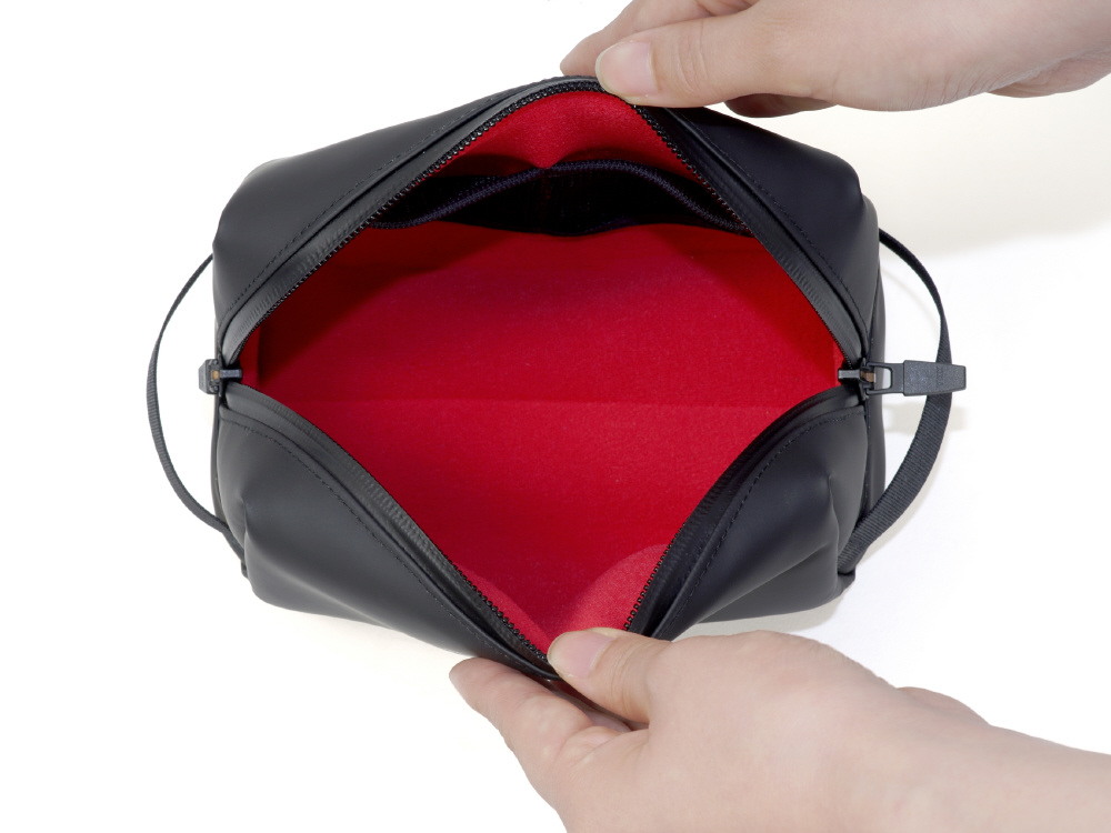 収納する機材の数量や種類に合わせて最適なサイズを選べるカメラポーチシリーズ。表地には、傷や水に強く、汚れも落としやすい高機能素材 DULON(R)(デューロン) を採用。