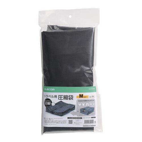 旅行用圧縮袋 19L 圧縮ポーチ トラベルポーチ 衣類収納 手で押すだけ 出張 旅行 繰り返し使用可 ブラック BMA-TRCS02MBK
