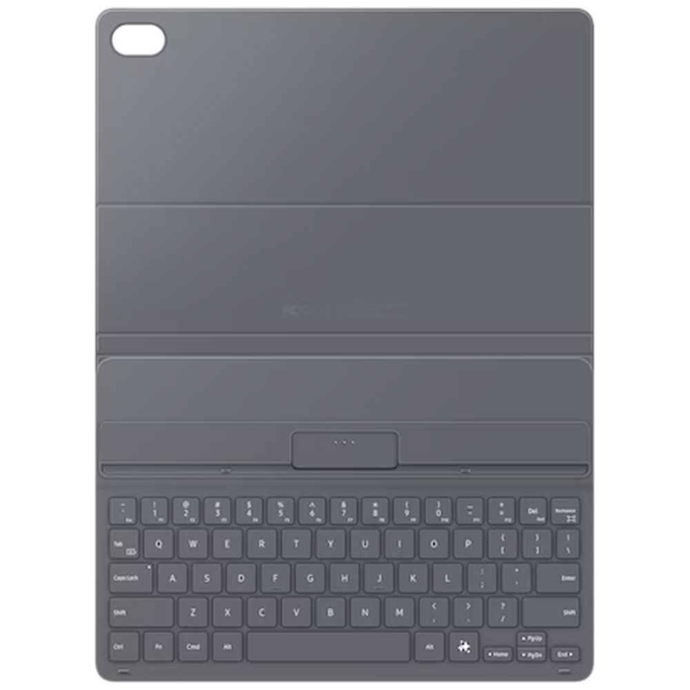 Book Cover Keyboard Slimは、カメラ周りにメタルパーツのアクセントを使い、上質さを演出しています。ブラックの外観と柔和なグレーの内装が、上質なツートン仕上げによる洗練された高級感を演出。