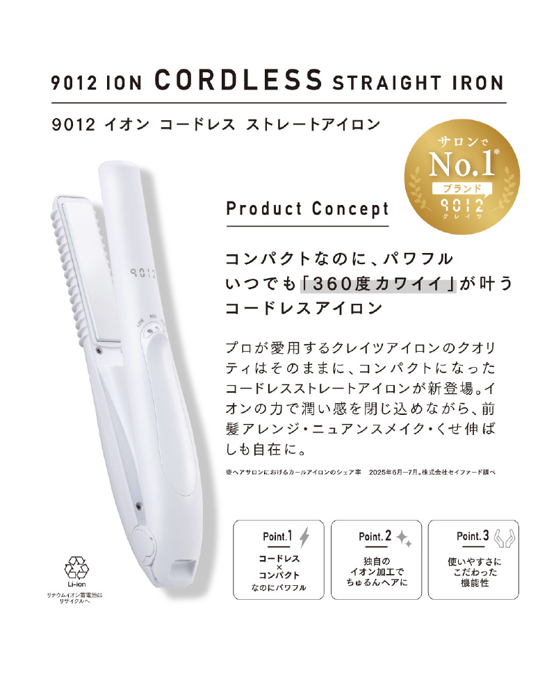 9012イオンコードレスストレートアイロン ホワイト CSP9012-G01W [充電式(コードレス)]