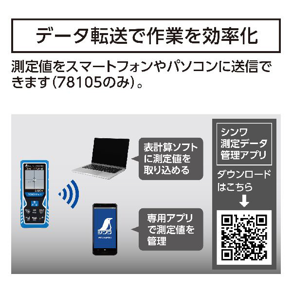 | 商品名 | シンワ測定 レーザー距離計 8倍ズームファインダー付きデータ転送 78105 |