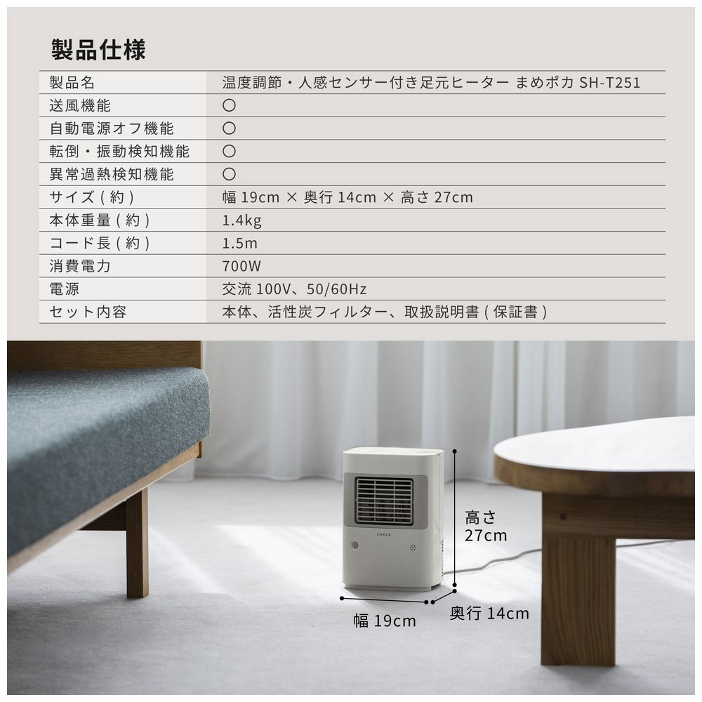| 商品名 | 足元ヒーター まめポカ ホワイト SH-T251 [人感センサー付き] |