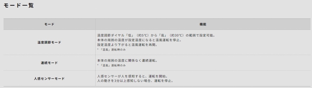 | 仕様1 | 「温度調節モード」で快適なあたたかさをキープ |