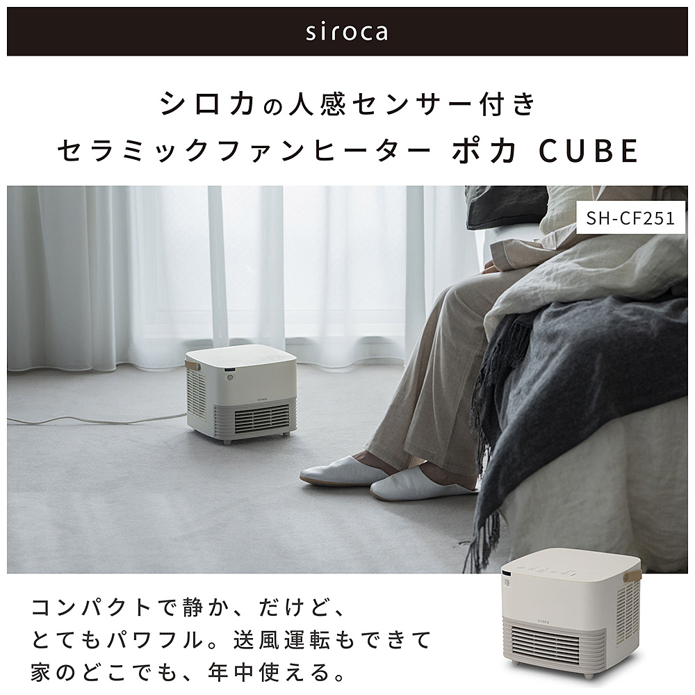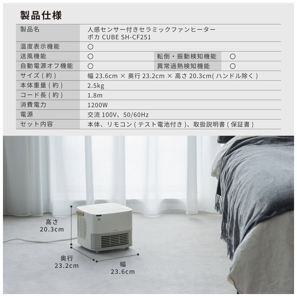 | 商品名 | 人感センサー付き セラミックファンヒーター ポカCUBE ホワイト SH-CF251 [人感センサー付き] |