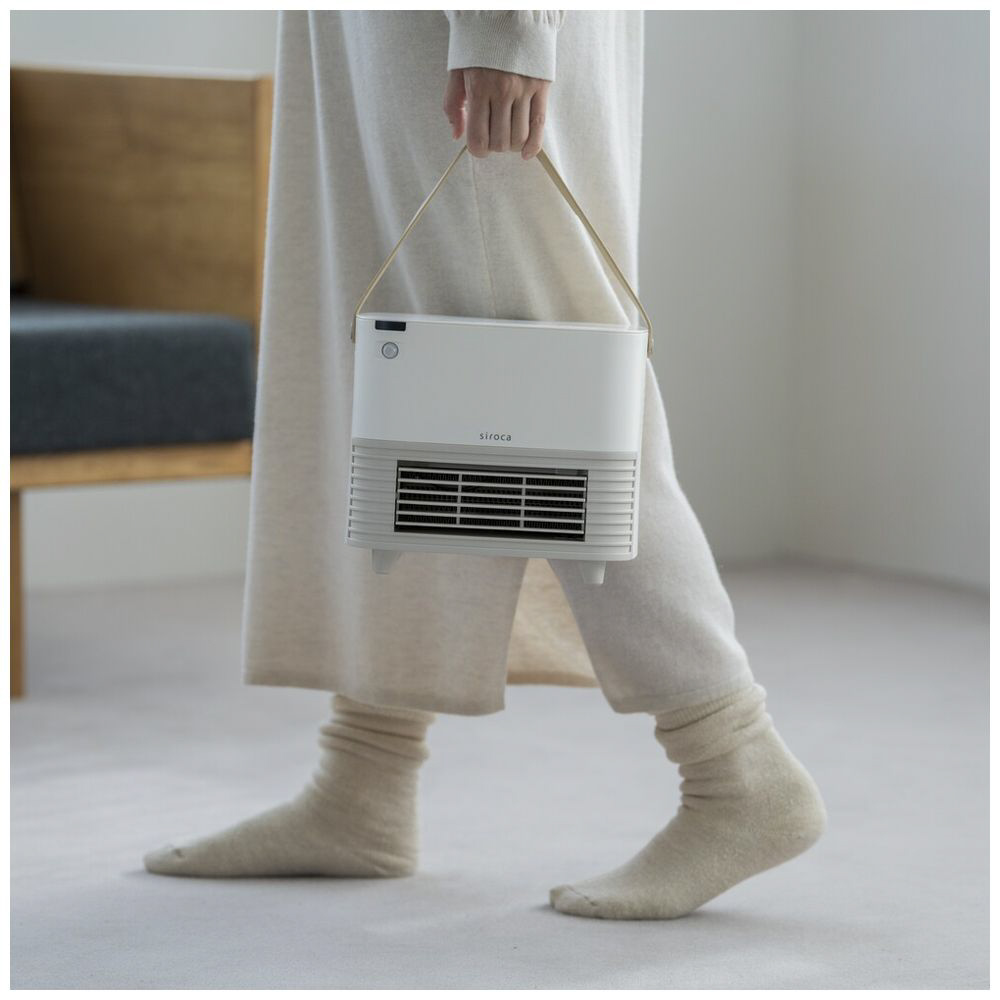 本体はコンパクトかつ、約2.5kgと軽量。さらにハンドル付きで持ち運びやすく、あたたかさが欲しいところへ手軽に持ち運んで使うことができます。