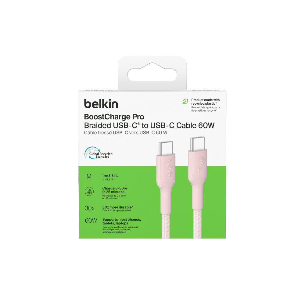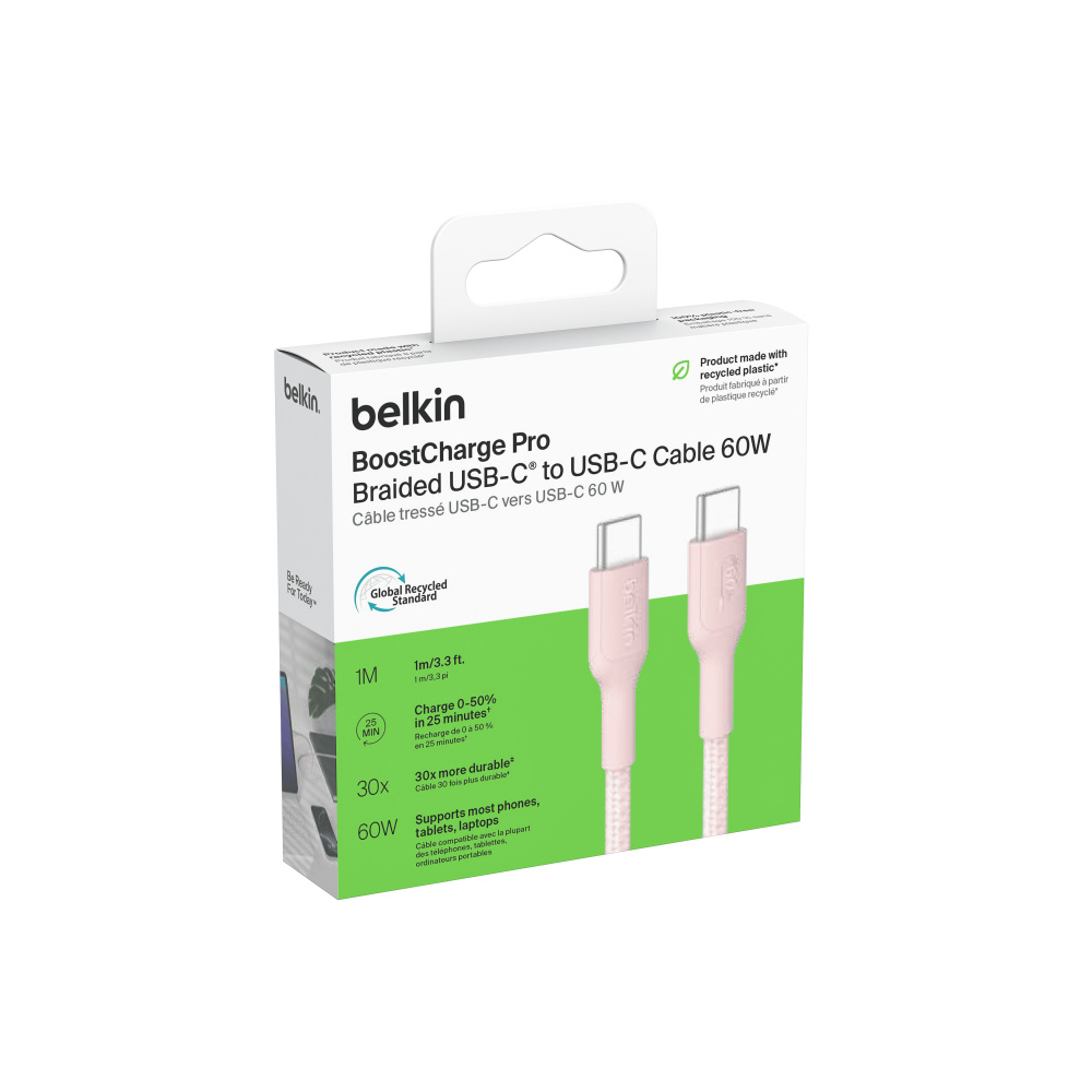 ・耐久性に優れた設計:30000回以上の折り曲げと10000回以上の抜き差しに耐えるBelkin PCR編組構造