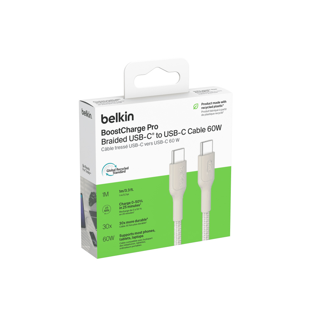 ・耐久性に優れた設計:30000回以上の折り曲げと10000回以上の抜き差しに耐えるBelkin PCR編組構造