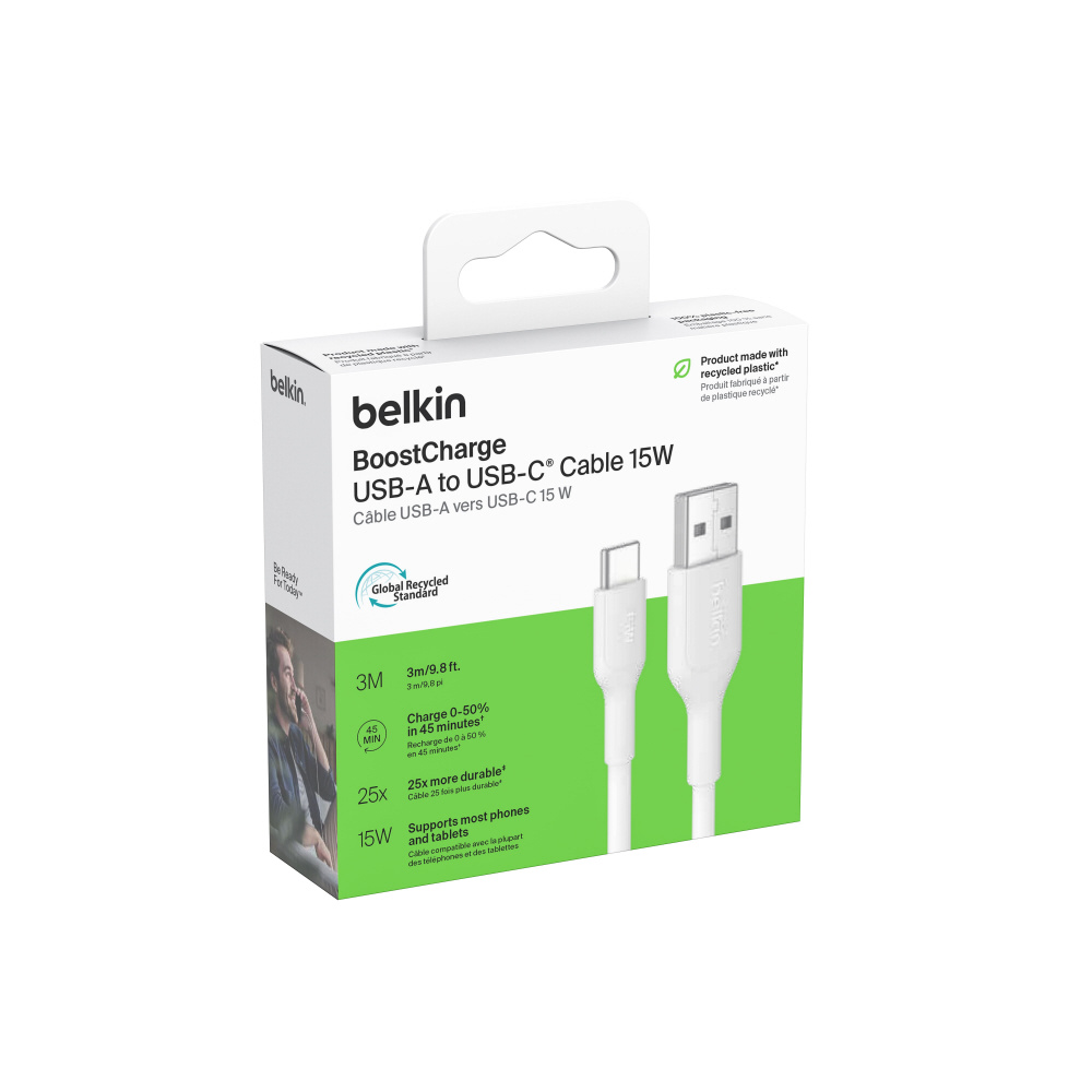 USB-A to USB-C ケーブル 15W 3m ホワイト CAB021fq3MWH
