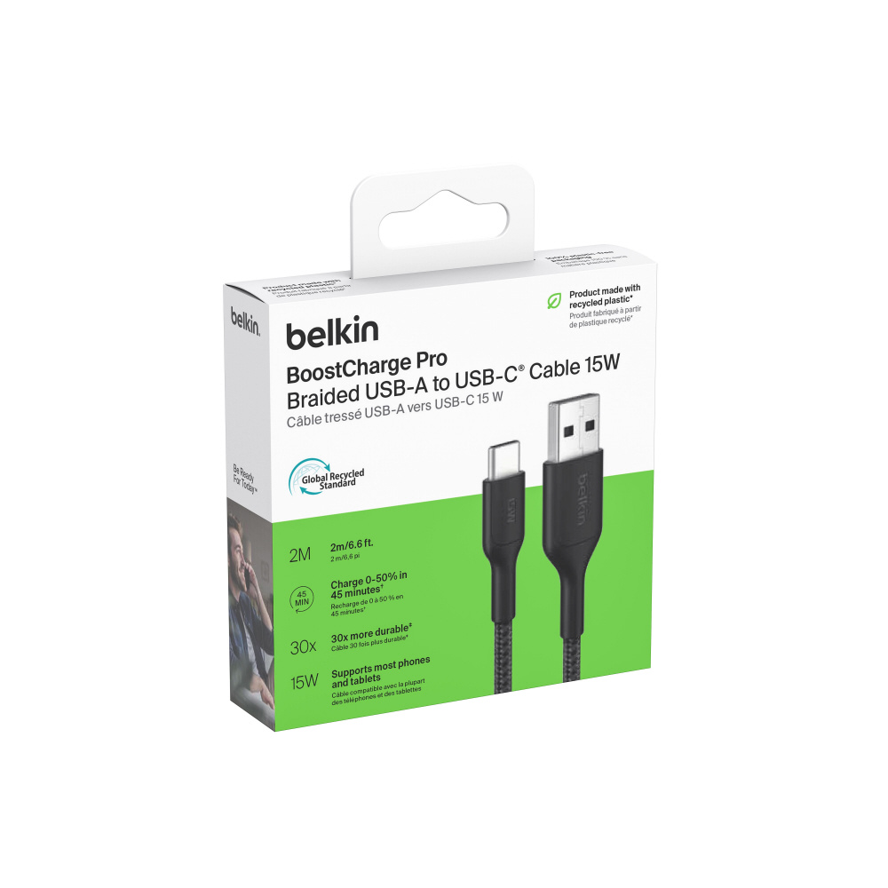 USB-A to USB-C 編組ケーブル 15W 2m ブラック CAB022fq2MBK