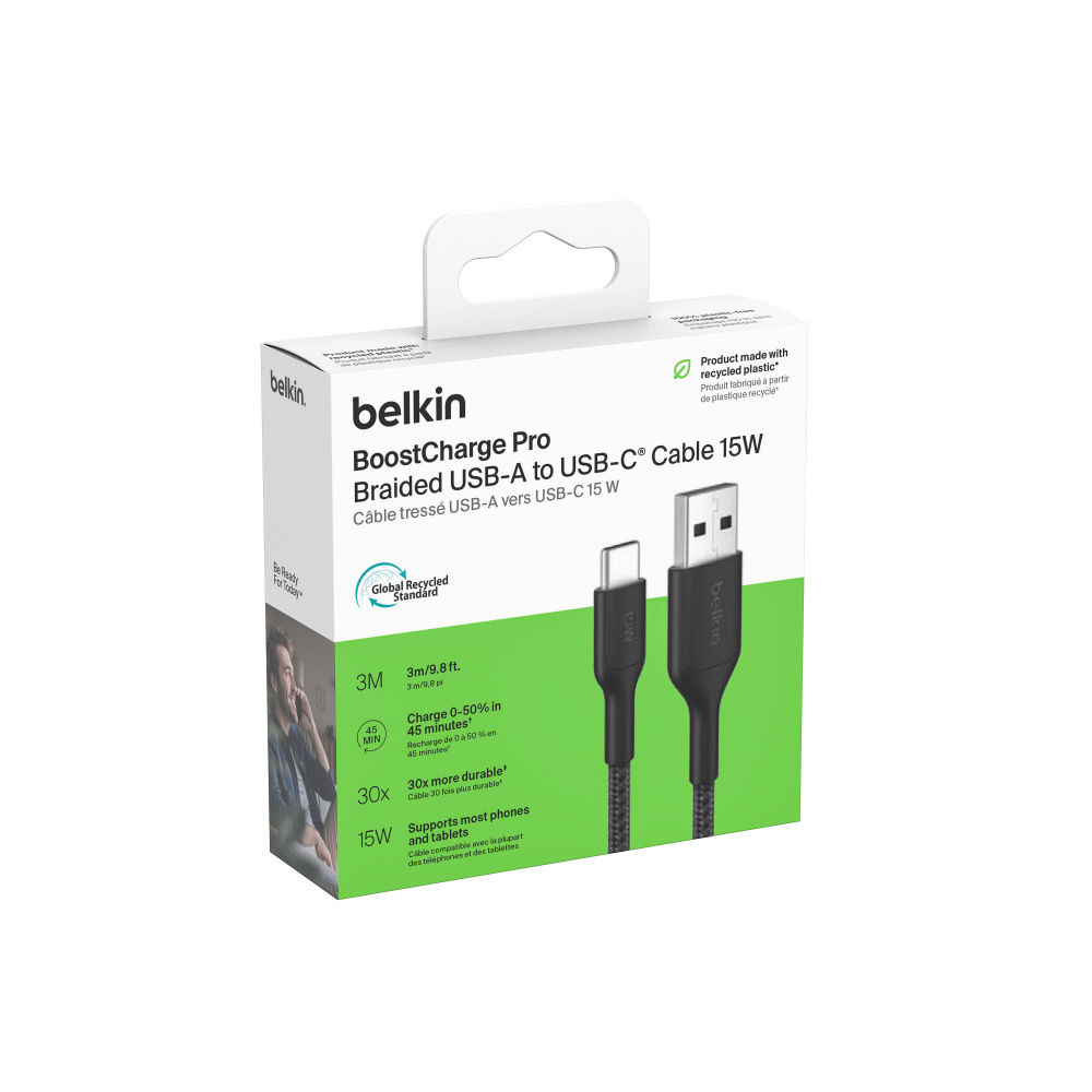 USB-A to USB-C 編組ケーブル 15W 3m ブラック CAB022fq3MBK