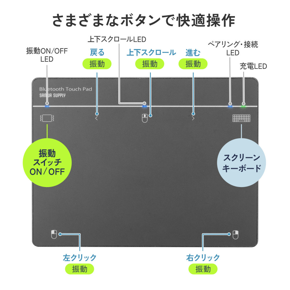 タッチパッド [W160xD120xH10mm] Bluetooth トラックパッド 充電式 14ジェスチャー USB-C 7インチ スクリーンキーボード対応 ノートPCタッチパッド (Windows11対応) MA-PB521LGM
