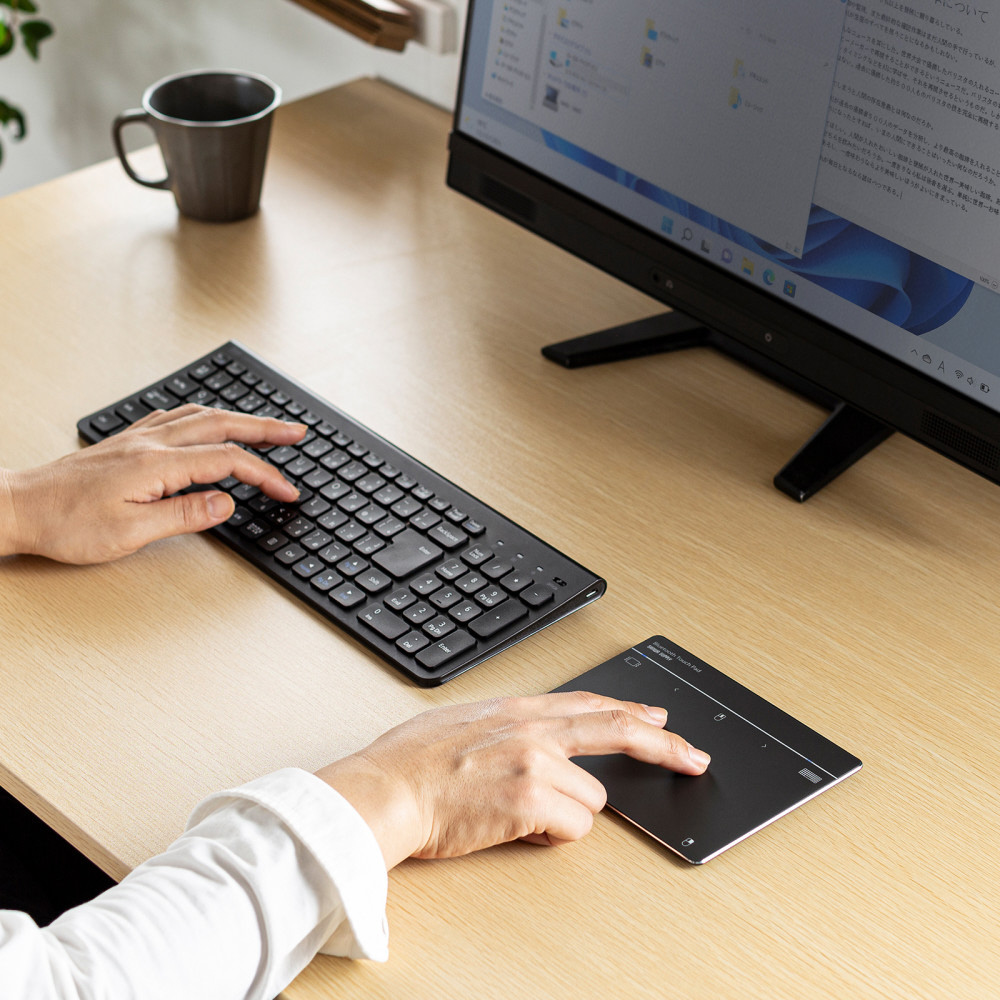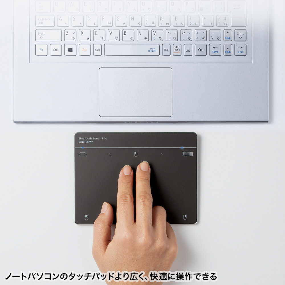 指でパソコンを操作できる、Bluetooth接続のタッチパッド。