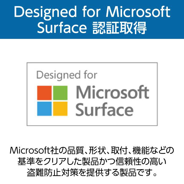 Microsoft社の品質、形状、取付、機能などの基準をクリアした製品かつ信頼性の高い盗難防止対策を提供する製品。