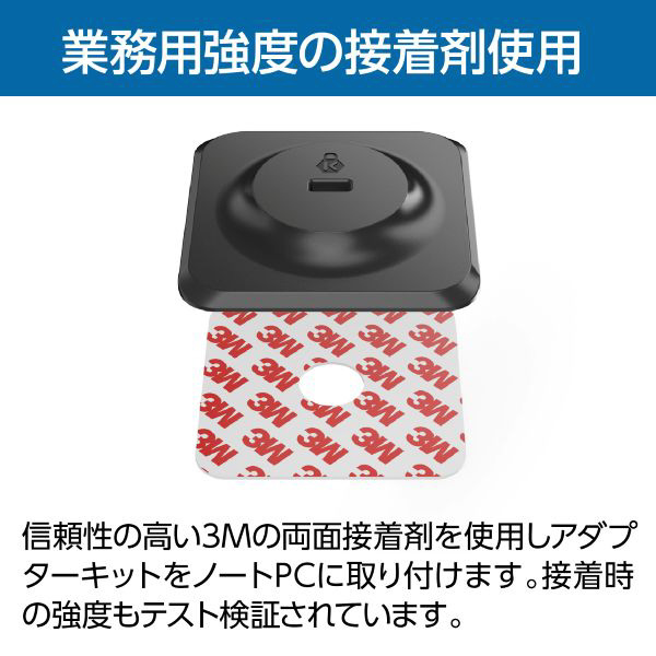信頼性の高い3Mの両面接着剤を使用しアダプターキットをノート PC に取り付けます。アダプター接着時の強度もテスト検証されています。