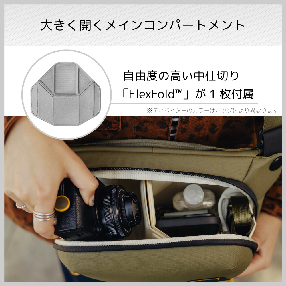 小型・軽量で、機動性に優れたスリングバッグ。コンパクトなミラーレスカメラとレンズなどを収納できます。クロスボディストラップの取り付け位置を変更することで、ウエストバッグとしても使用できます。