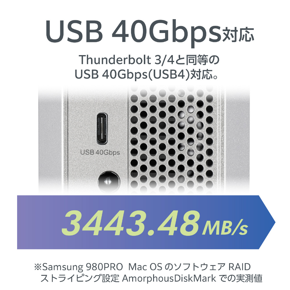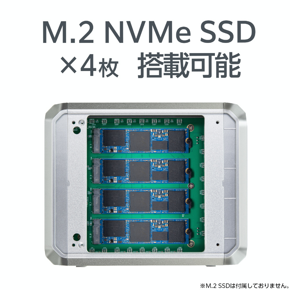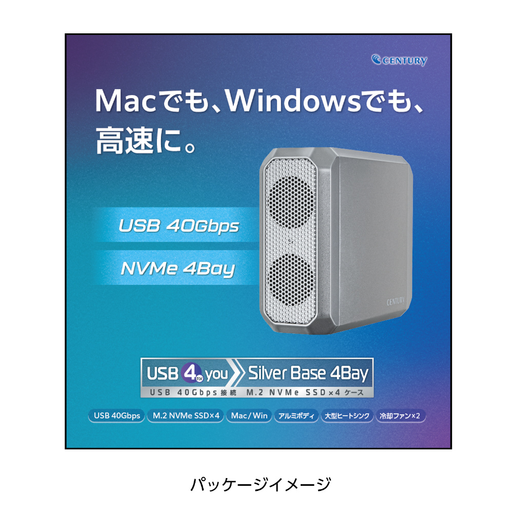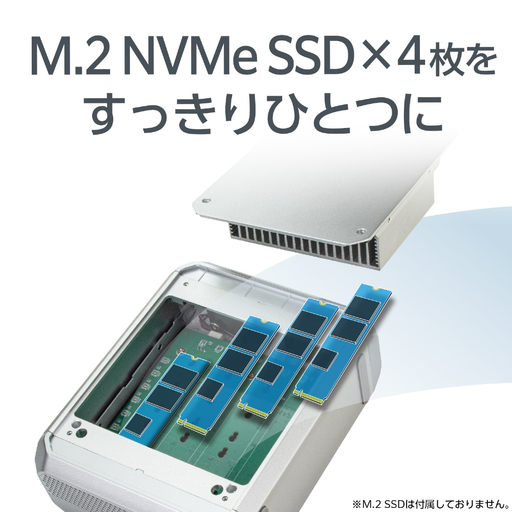 Macでも、Windowsでも、高速に。- USB 40Gbps接続M.2 NVMeが最大4枚搭載できるSSDケース