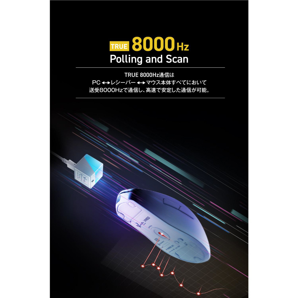 ■最大8KHzのポーリングレートに対応し、非常に高い入力頻度と、極めてなめらかで応答性の高い操作を実現します。ポーリングレートは、1K・2K・4K・8Kの4段階で設定が可能です。