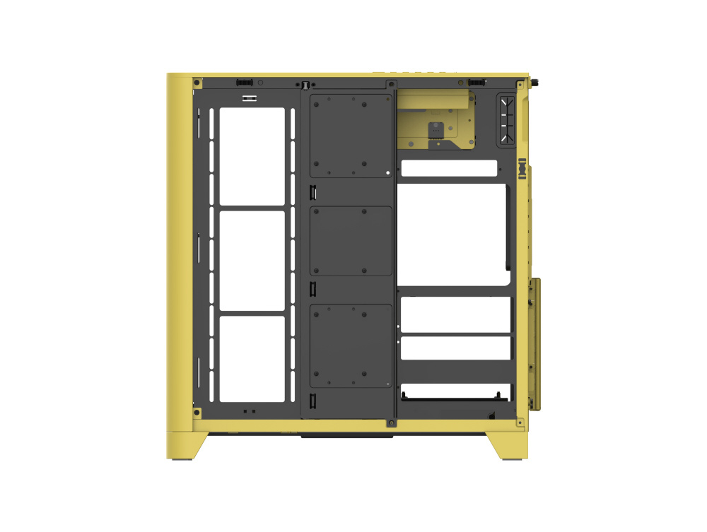 曲面強化ガラスパネルとフロントメッシュパネルを搭載。背面コネクタ設計のマザーボードに対応したミドルタワー型PCケース