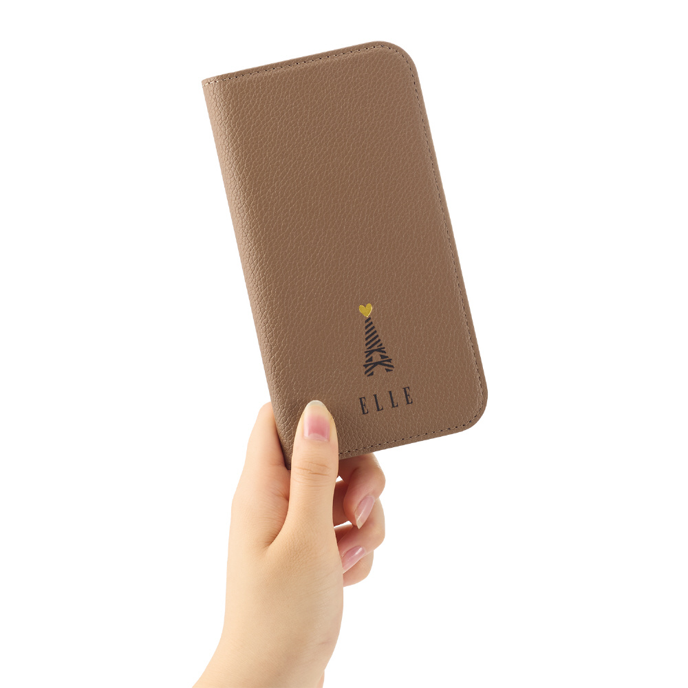ブランドアイコンのハートとELLEのロゴをあしらい、内側にはカードポケットを装備。幅広い層にお使いいただける手帳型ケースです。