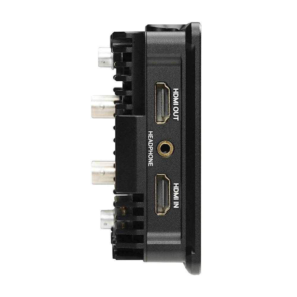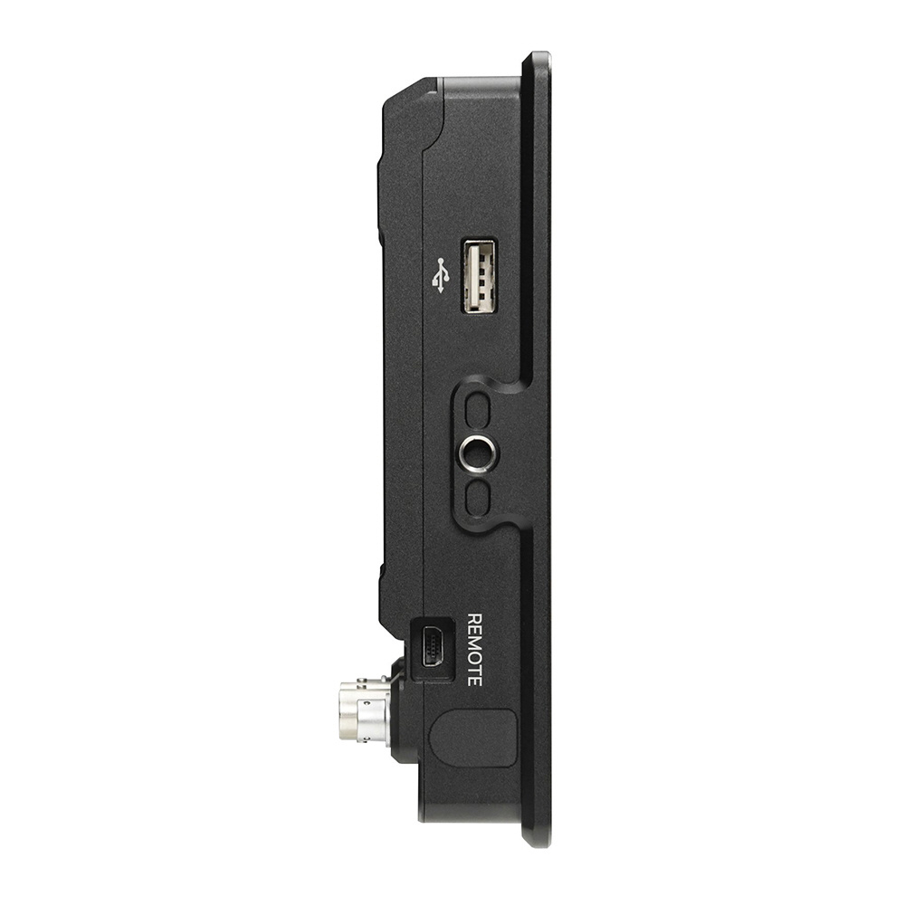タッチスクリーン仕様。5.5インチ、10ビット(8+2 FRC)パネル、解像度1920 x 1080、コントラスト比1000:1、最大輝度2,000nitの昼光対応。波形、ベクトルスコープ、ピーキング、ARRIフォールスカラー、3D LUTモニタリングをサポートするプロフェッショナルなモニタリングツールです。