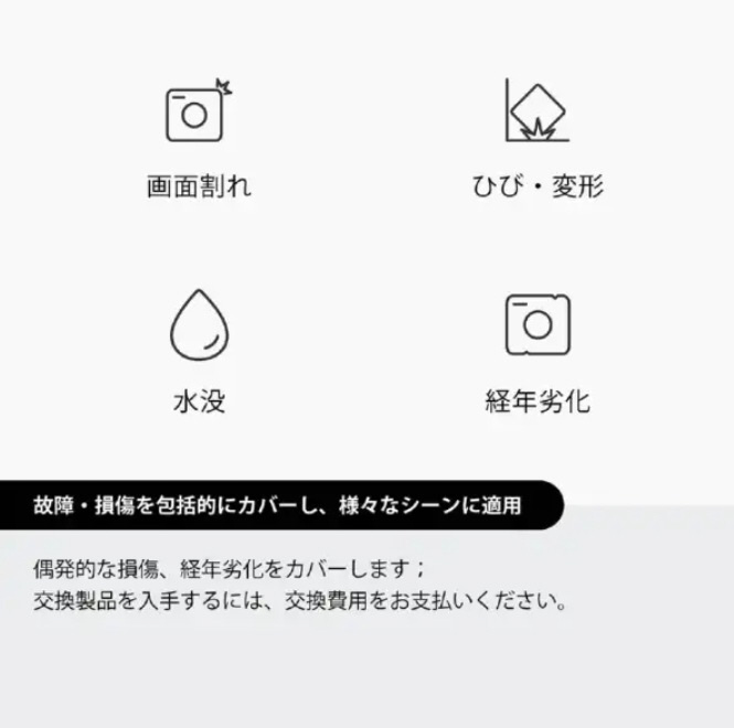 特別価格のお支払いで、故障・損傷が生じた製品を交換できます。