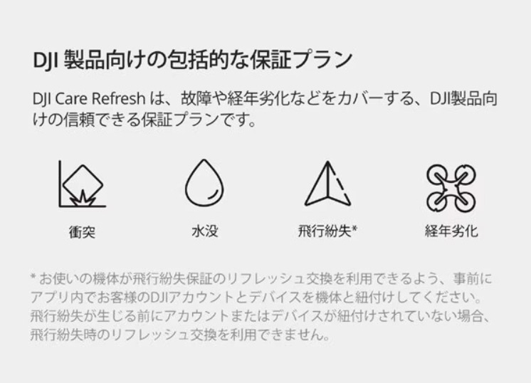 2. サービス延長条件:DJI Care Refreshがサービス有効期間中、またはサービス期間終了後15日以内であれば、DJI Care Refresh(1年版)を購入・関連付けすることで、サービスを延長することができます。(最大で3年間利用できます)
