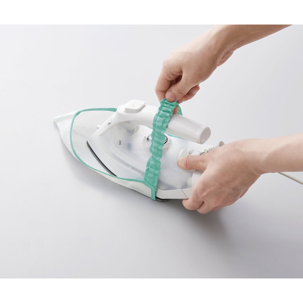 (3)ハンドルとゴムを持ち、アイロンと本品がずれないように確認しながら使用してください。衣類をおさえながら一方向にアイロンがけをしてください。