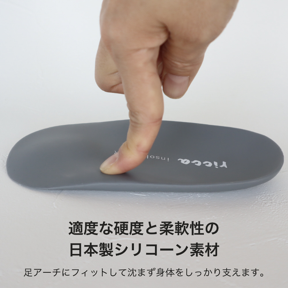 適度な硬度と柔軟性を持つ素材が、足裏アーチをサポートしつつ、歩行時の沈み込みにも適切に対応。