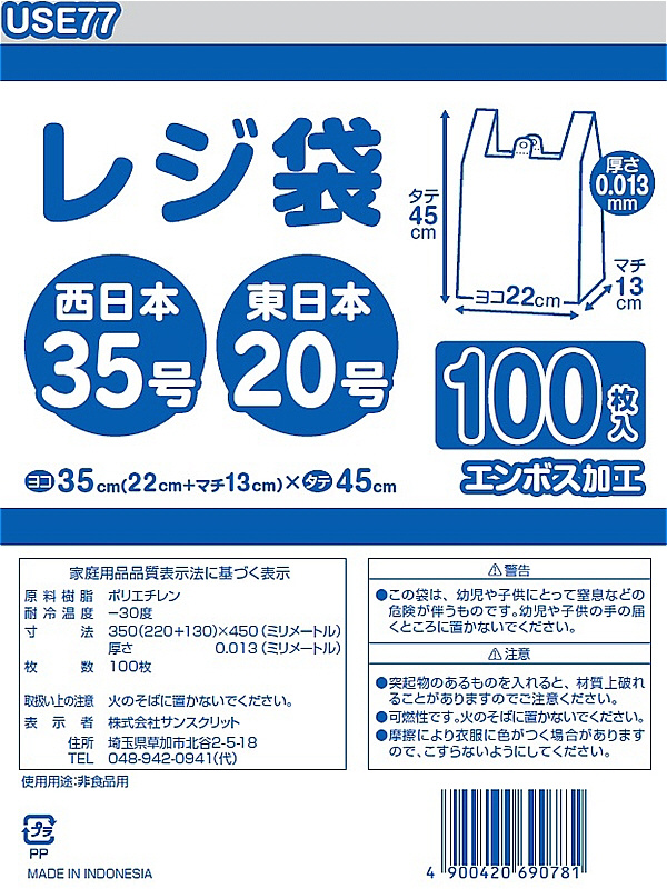 | 商品名 | USE77レジ袋100枚 USE77 |