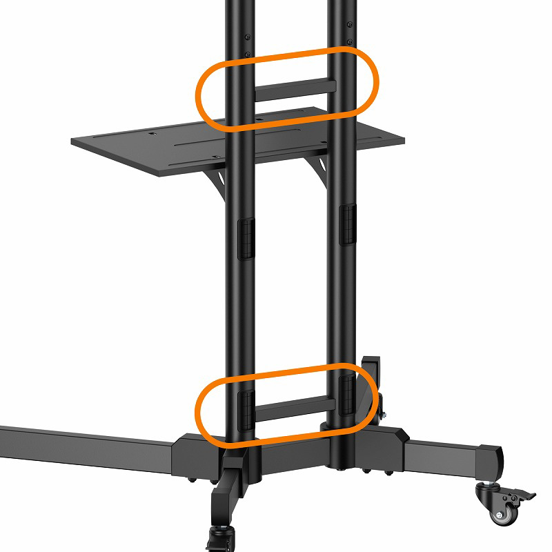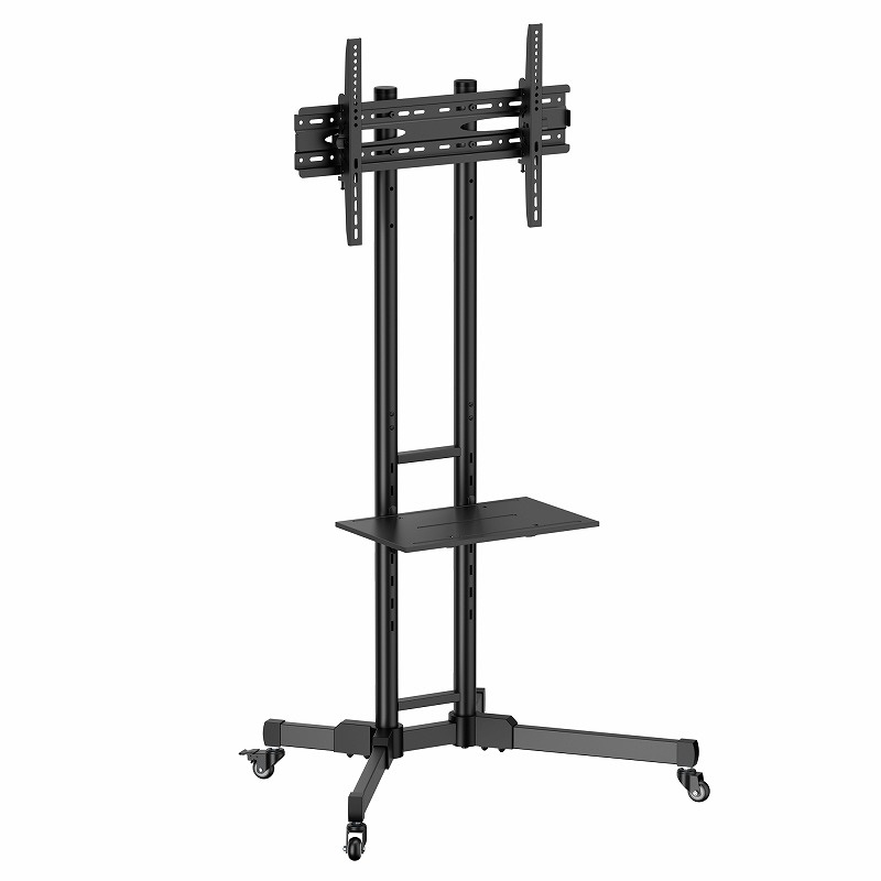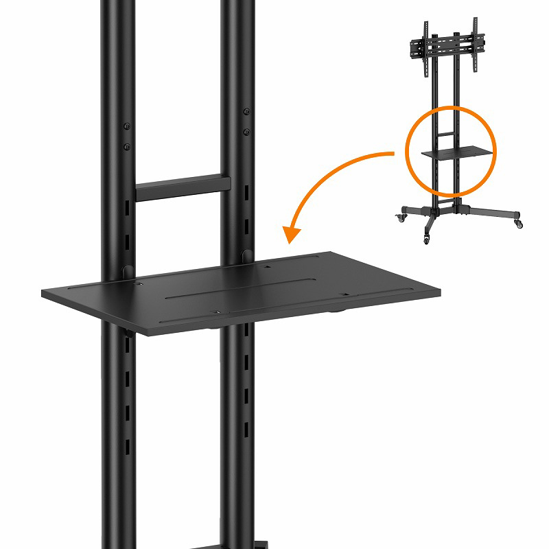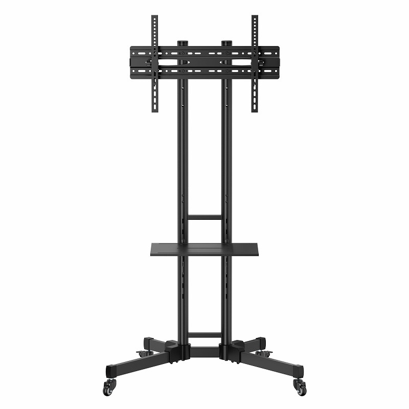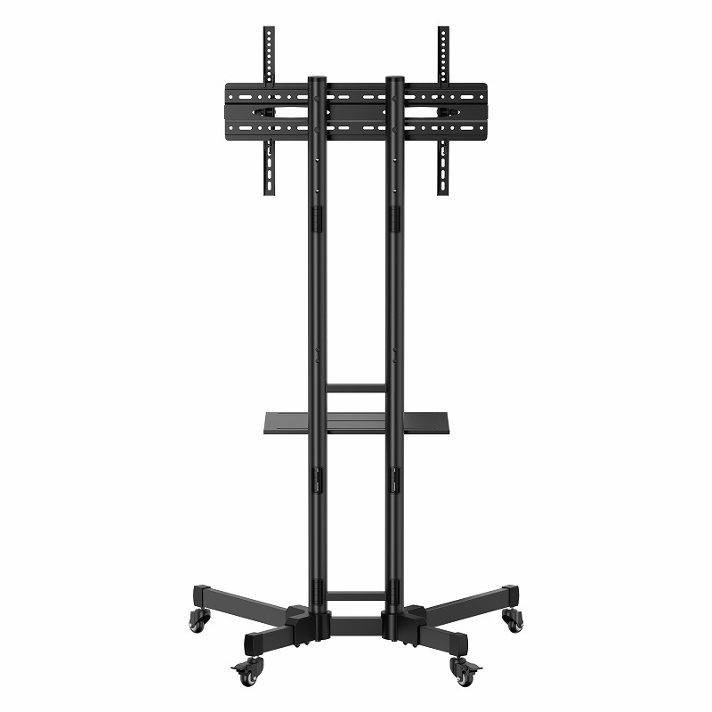 43〜65インチの大型モニター、テレビ、サイネージに対応したキャスター付きディスプレイスタンドです。