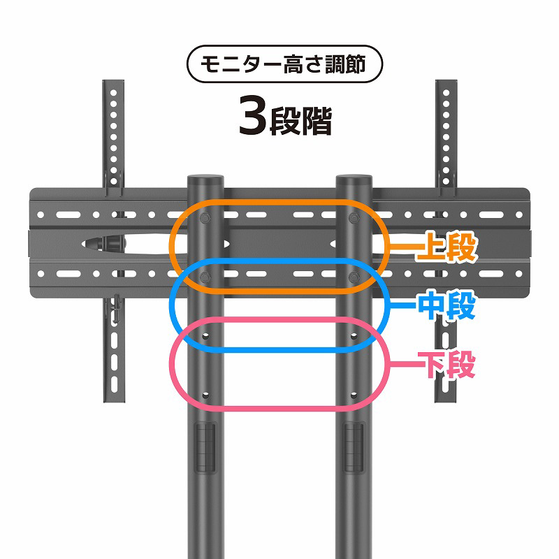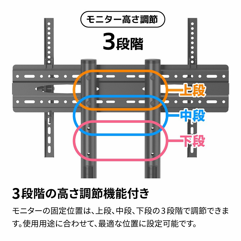 モニターの固定位置は、上段、中段、下段の3段階で調節できます。