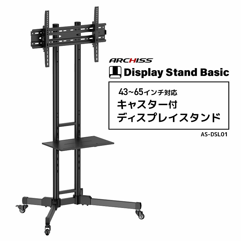 モニタースタンド [1画面 /43〜65インチ] キャスター付 ブラック AS-DSL01