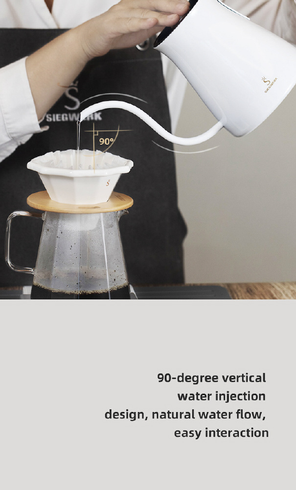 繊細な注ぎ口設計により、湯量を正確にコントロールし、抽出プロセス全体を通して安定性と一貫性を確保します。