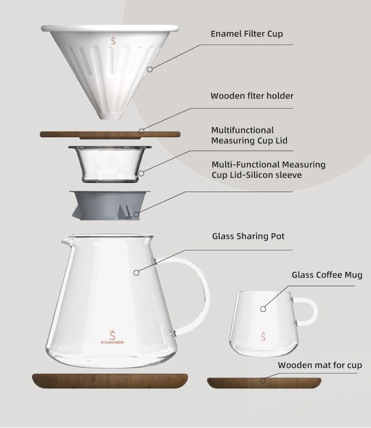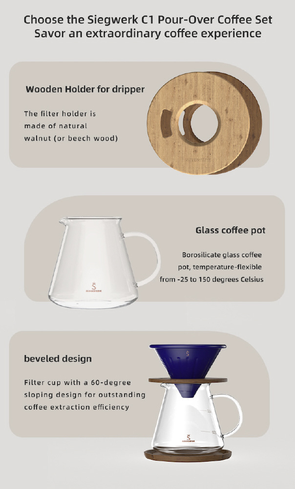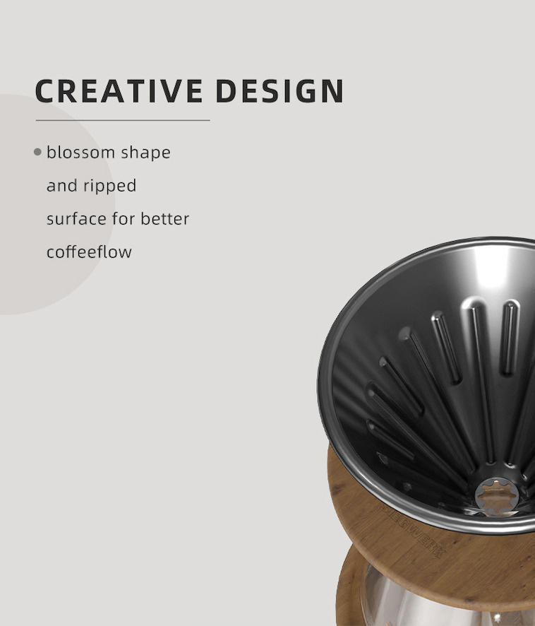 安定したサボートと美しいデザインのを木製スタンド。コーヒーの滴り落ちる速度をより明確に確認でき、正確な抽出プロセスを助けます。