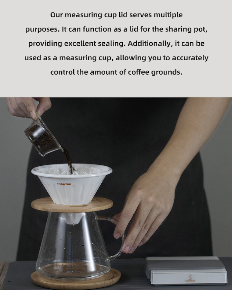 ガラスシェアリングボットの蓋としてしっかりと密閉するだけでなく、コーヒー粉の量を正確に計量できます。