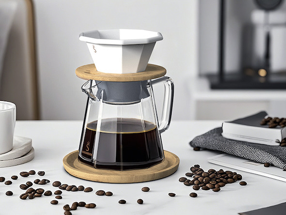 60度の角度で傾斜した円錐型ドリッパーは、天然で環境に優しいガラスコーティングで作られており、