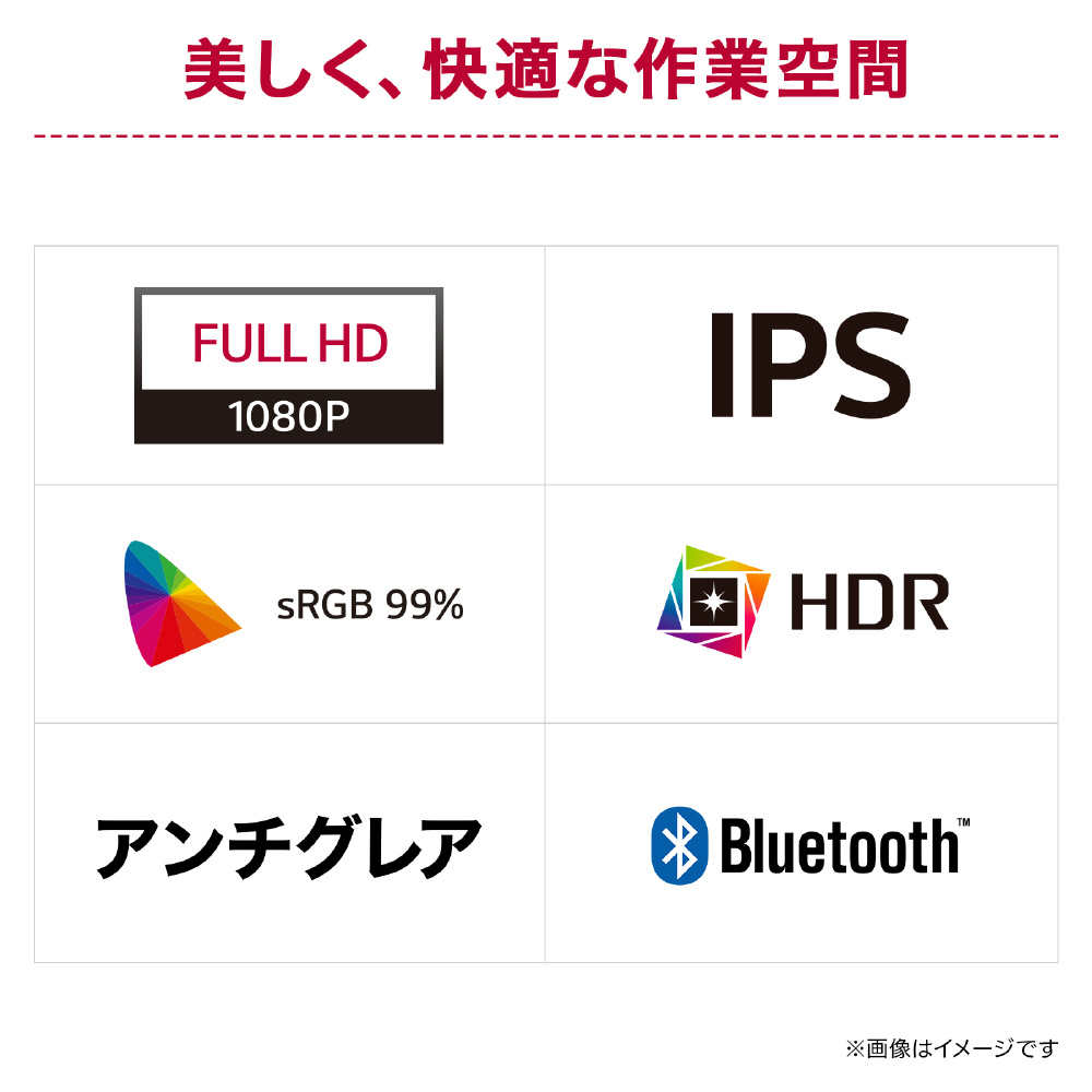 Windowsの標準色域であるsRGBを99%カバー。写真や映像をそのままのきれいな色ではっきり表示できます。