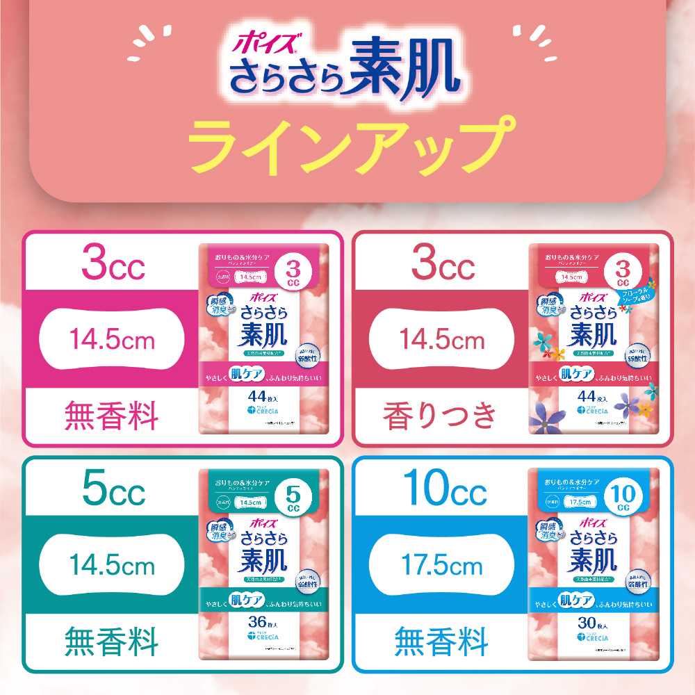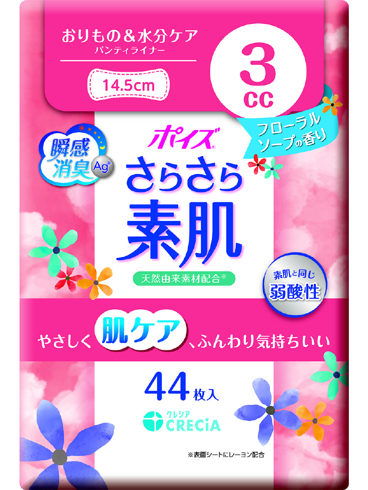 | 商品名 | ポイズさらさら素肌パンティーライナー 3CC フローラルソープ 44枚 |