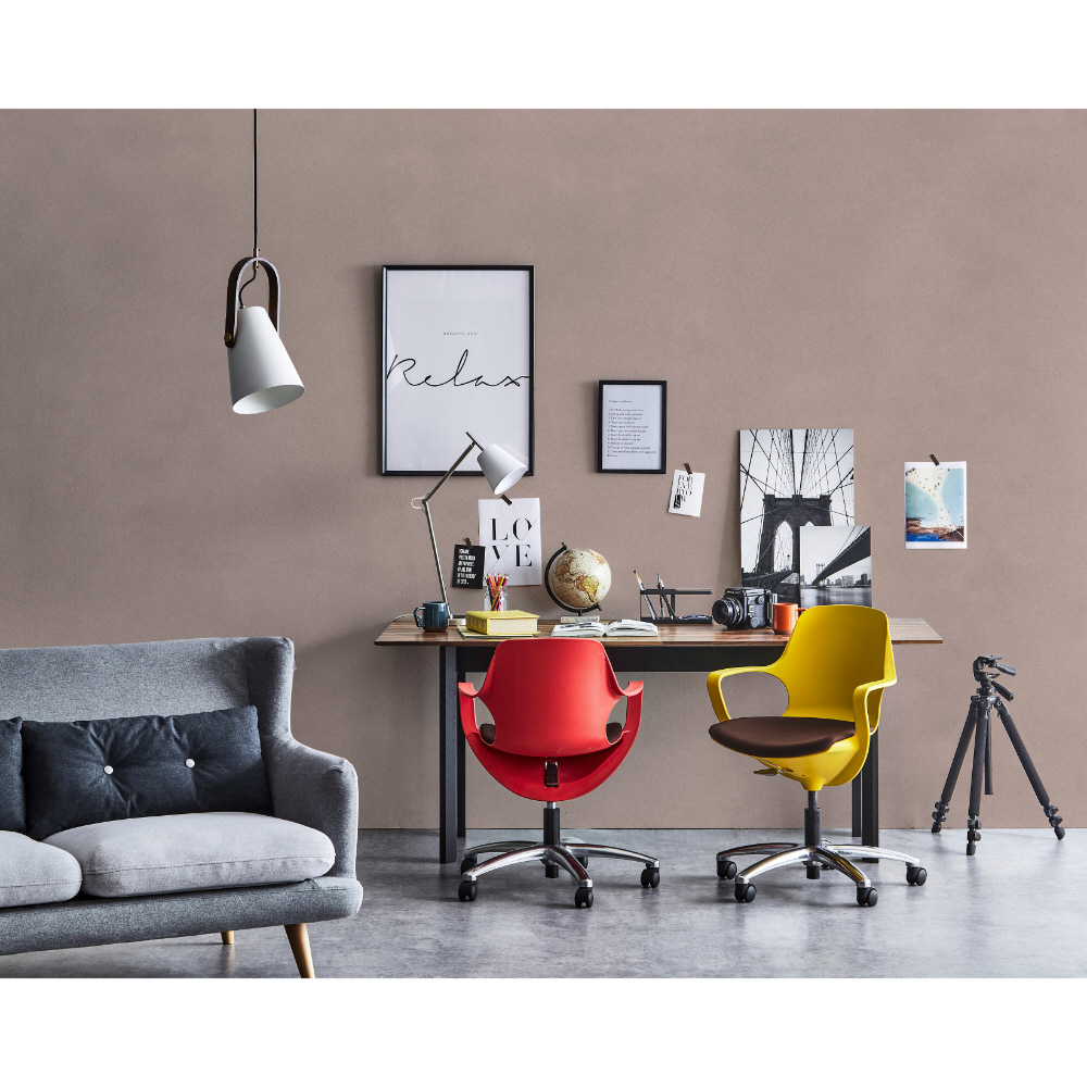 その特徴的なシルエットと鮮やかなカラーリングで、ホームオフィスやカジュアルなオフィス空間にぴったりのチェアです。