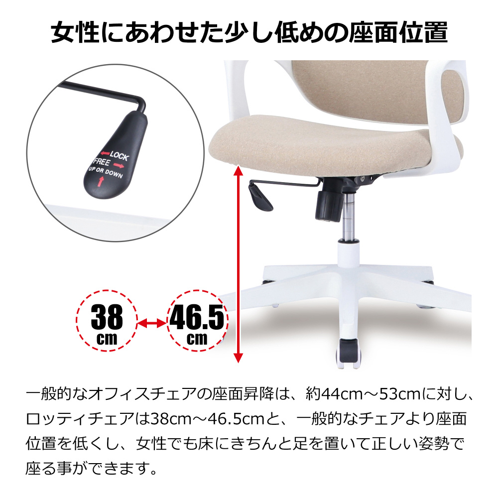 オフィスチェア [W630xD630xH850〜935mm] ロッティ ビスケットベージュ 360872