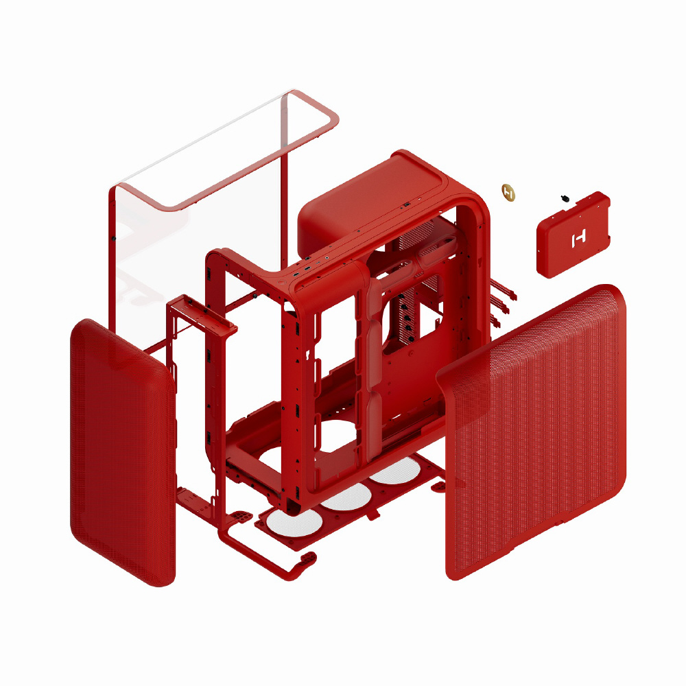 X50は、ケース全面から内部に至るまで曲面デザインを徹底した新機軸のPCケースです。フレームは内外全て統一されたカラーリングで、定番のブラックやホワイトの他、レッド、パープル(Taro Milk)、ピンク(Strawberry Milk)、グリーン(Matcha Milk)など全6色をラインアップしています。