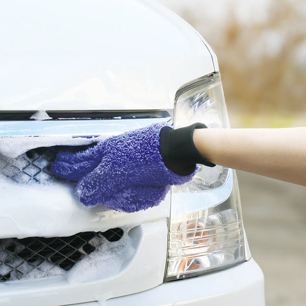 洗いやすいグローブ形状で、手の平感覚で自由に洗車出来ます。