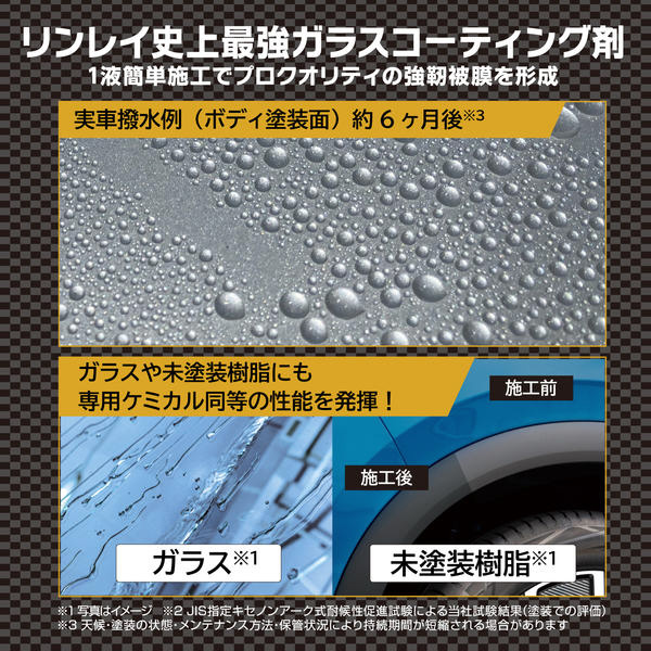 最先端の湿気硬化技術により美しいツヤと異次元の耐久性を実現難しい作業は不要で、専門店レベルのガラスコーティングをもっと身近に